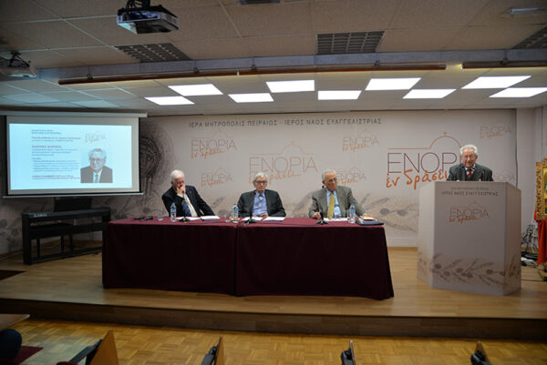 Τον επιφανή Δημοσιογράφο Ιωάννη Μαρίνο, τον μακροβιότερο Εκδότη – Διευθυντή του οικονομικού – πολιτικού περιοδικού Οικονομικός Ταχυδρόμος και πρώην Ευρωβουλευτή, τίμησε το πρόγραμμα «ΕΝΟΡΙΑ εν δράσει…» του Ιερού Ναού Ευαγγελιστρίας Πειραιώς.