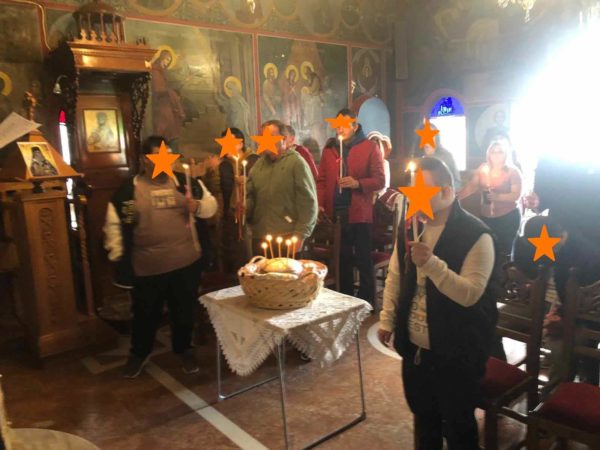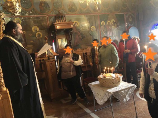 Δέχθηκαν τις ευχές της Εκκλησίας από τον Εφημέριο της Ενορίας μας και αμέσως μετά απόλαυσαν την αβραμιαία φιλοξενία με κεράσματα από την Ομάδα Κυριών Ιερού Ναού Νεομάρτυρος Δημητρίου και Παναγίας Γοργοεπηκόου « ΦΙΛΙΚΗ ΑΓΚΑΛΙΑ»