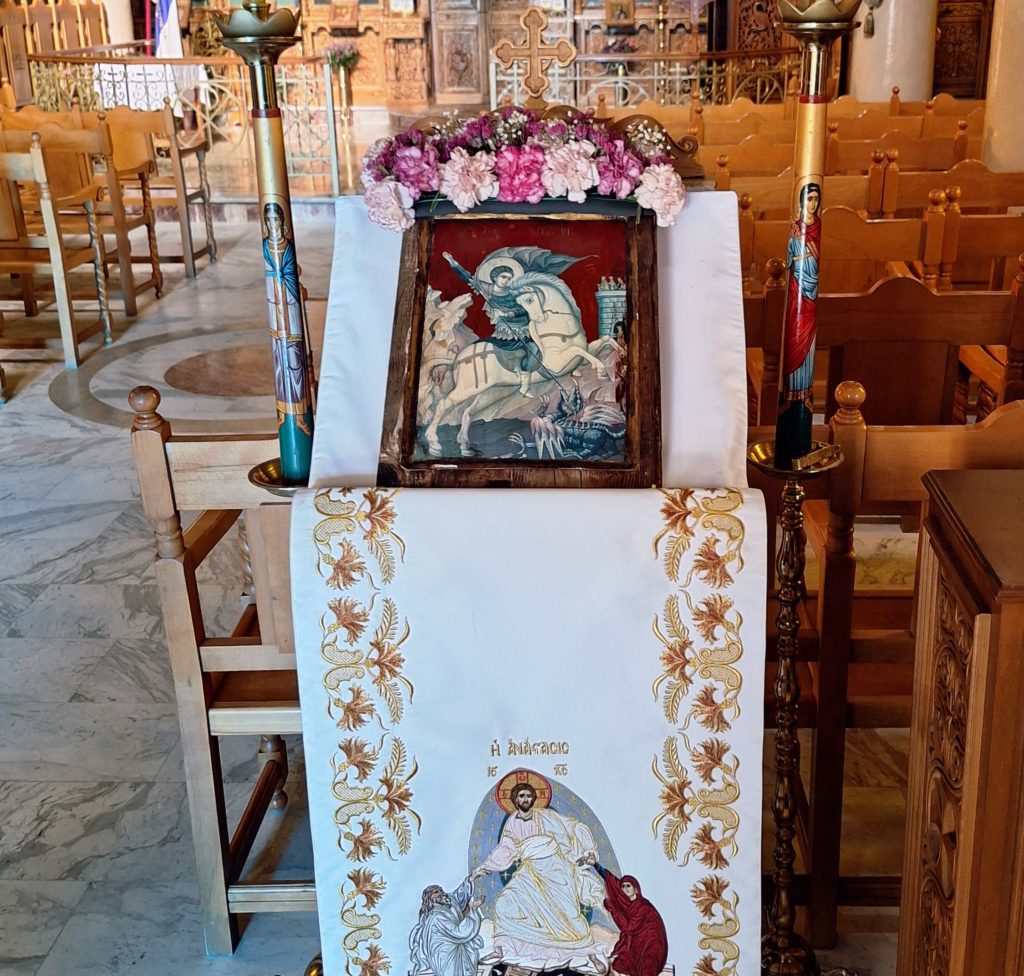 Οι εορτασμοί του Αγίου Γεωργίου κορυφώνονται αύριο Σάββατο 25 Απριλίου. Το πρωί στις 07:15 θα τελεστεί η Πανηγυρική Θεία Λειτουργία στον Ιερό Μετοχιακό Ναό Αγίου Γεωργίου Σάρτης, σε μια ατμόσφαιρα κατάνυξης και ευλάβειας.