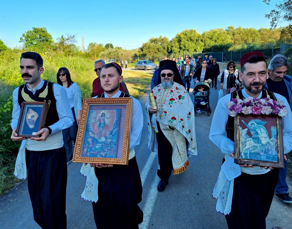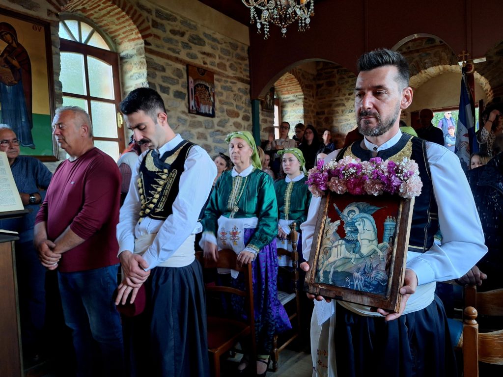 Τιμώντας αυτή την ιστορική παρακαταθήκη, η φετινή πανήγυρη τελέστηκε με ιδιαίτερη λαμπρότητα όπως και κάθε χρόνο. Η λιτανευτική πομπή ξεκίνησε από τον Ιερό Ναό Κοιμήσεως της Θεοτόκου, με την εικόνα του Αγίου Γεωργίου να μεταφέρεται στα χέρια νέων με παραδοσιακές φορεσιές, συνοδεία πλήθους πιστών.