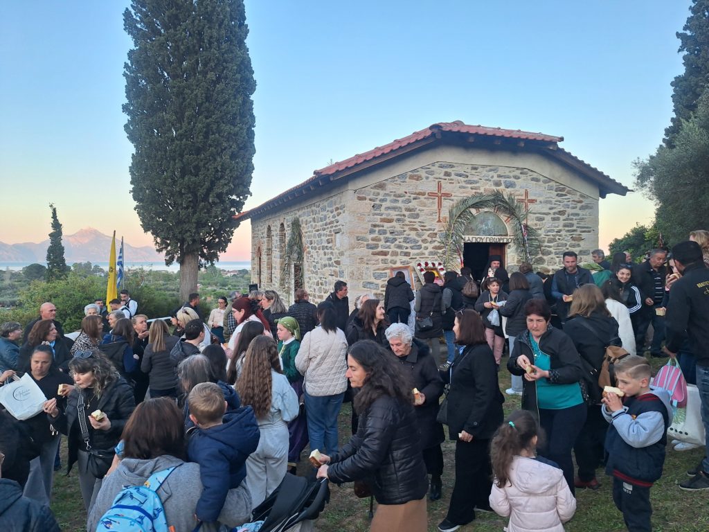 Η πομπή κατέληξε στον Μετοχιακό Ναό, εκεί όπου τελέστηκε ο Μέγας Πανηγυρικός Εσπερινός, η Αρτοκλασία και εν συνεχεία η παράκληση του Αγίου Γεωργίου. Η ατμόσφαιρα ήταν φορτισμένη από τη μνήμη των προγόνων, καθώς το πέτρινο συγκρότημα του Μετοχίου «πλημμύρισε» ξανά από τις προσευχές των απογόνων εκείνων των πρώτων προσφύγων.