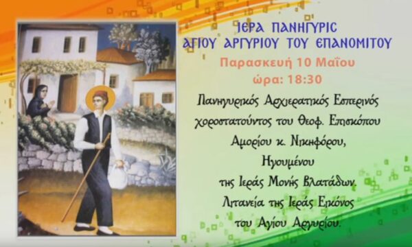 To τηλεοπτικό SPOT της Ι. Πανήγυρις Αγίου Αργυρίου του Επανομίτου ενόψει της Παρασκευής 10 και Σάββατο 11 Μαΐου 2019, εκ μέρους του διαύλου “4Ε”.