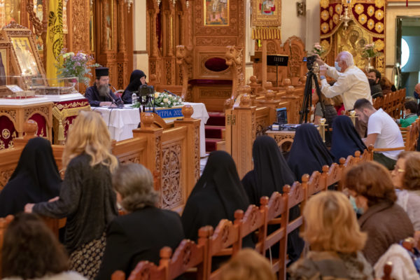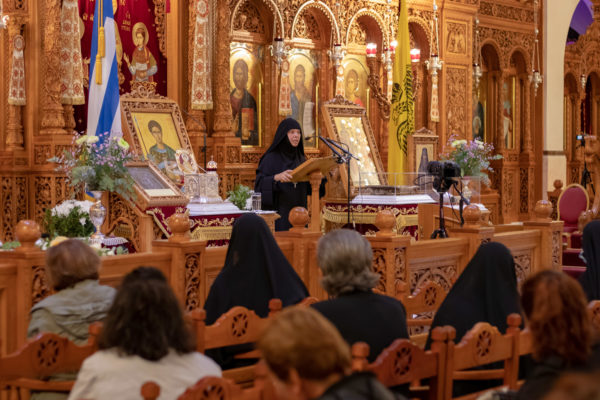 Ακολούθησε το καθιερωμένο “Ενοριακό Αρχονταρίκι” εντός του Ιερού Ναού, στο οποίο η Γερόντισσα Μόνικα απάντησε στα ενδιαφέροντα ερωτήματα τα οποία της υπέβαλε το ακροατήριο.