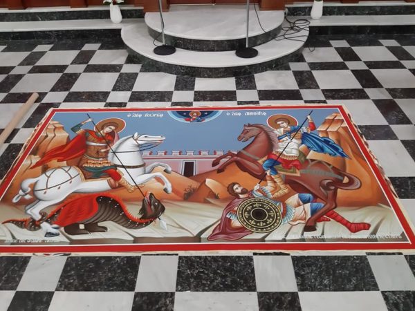 Η τοποθέτηση της νέας αγιογραφίας των Αγίου Γεωργίου και Αγίου Δημητρίου (έφιπποι), δια χειρός Δημητρίου Βραχνού, έλαβε χώρα στον Ιερό Ναό Αγίας Μαρίνας Περιστερίου.
