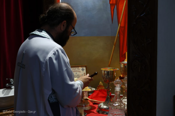Την Θεία λειτουργία τέλεσε ο Πρωτ. π. Θεοδόσιος Αργυρόπουλος εφημέριος του Ιερού Ναού , ενώ το ιερό αναλογίο διηκόνησε ο πρωτοψάλτης του ναού κ. Δημήτριος Βλαχόπουλος με την συνοδεία του.