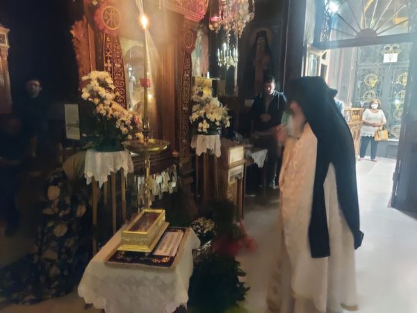 Της Θείας Λειτουργίας προεξήρχε και κήρυξε το Θείο λόγο ο Καθηγούμενος της Ιεράς Μονής Αγίου Νεκταρίου και Αγίας Τριάδος Γλυφάδας, Αρχιμανδρίτης π. Νήφων.