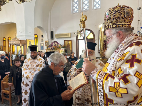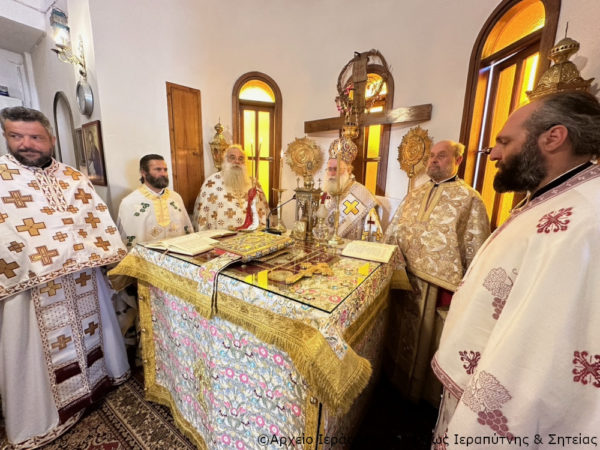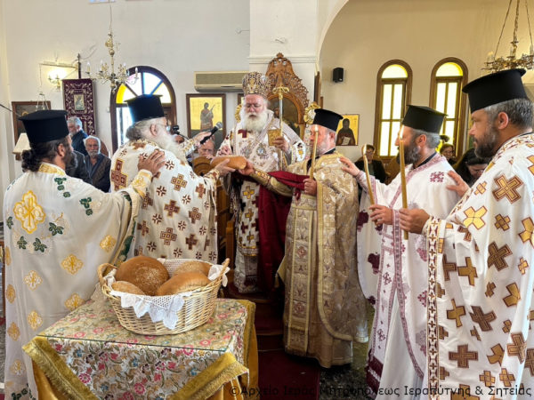 Ο Σεβ. Μητροπολίτης Ιεραπύτνης και Σητείας κ. Κύριλλος χοροστάτησε στην ακολουθία του Όρθρου, ευλόγησε τους άρτους και στη συνέχεια τέλεσε τη Θεία Λειτουργία και κήρυξε επίκαιρα τον θείο λόγο.