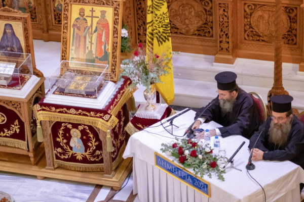 Ο Σεβασμιώτατος ολοκληρώνοντας την ομιλία του είπε: “Eορτάζουμε την επέτειο των 200 χρόνων, τιμώντας ιδιαίτερα τους Νεομάρτυρες και τους Κολλυβάδες. Αυτούς που αποτελούν τα θεμέλια του ’21. Το ΄21 έγινε, γιατί στα 400 χρόνια που προηγήθηκαν έπεσαν γερά θεμέλια. Έριξε βαθιές ρίζες. Και οι ρίζες αυτές, τα θεμέλια αυτά, είναι οι Νεομάρτυρες και οι Κολλυβάδες. Οι Νεομάρτυρες ενίσχυσαν τους υποδούλους, έγιναν λαμπρά παραδείγματα αγωνιστικότητας και θυσίας, αναπτέρωσαν το ηθικό των ραγιάδων και με μία λέξη κατά τον αείμνηστο π. Γεώργιο Μεταλληνό, «ήταν οι αληθινοί αντιστασιακοί για τη διάσωση του Ελληνικού Έθνους». Επίσης και οι Κολλυβάδες Πατέρες, στήριξαν το Έθνος/Γένος με την ορθόδοξη πίστη, την ιστορία και τη γλώσσα, την εθνική συνείδηση. Οι Νεομάρτυρες και οι Κολλυβάδες απετέλεσαν τα πνευματικά θεμέλια του 1821. Το Έθνος μας, πορεύεται με έναν κανόνα βίου, ένα δόγμα ζωής, τον περίφημο εκείνο στίχο από την Ιλιάδα: “Εἷς οἰωνὸς ἄριστος ἀμύνεσθαι περὶπάτρης”. Να αμύνεσαι για την πατρίδα σου. Η φιλοπατρία, η αγάπη για την πατρίδα, είναι δώρο του Θεού στον άνθρωπο για όλους τους λαούς και για όλα τα έθνη της γης.