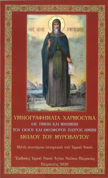 Με την χάρη του Θεού, εξεδόθη υπό του Ιερού Ενοριακού Ναού Αγίου Νείλου Μυροβλύτου Πειραιώς, υμνολογική δέλτος υπό τον τίτλο: «Ὑμνογραφήματα Χαρμόσυνα εἰς τιμήν καί μνήμην τοῦ Ὁσίου καί Θεοφόρου Πατρός ἡμῶν Νείλου τοῦ Μυροβλύτου».