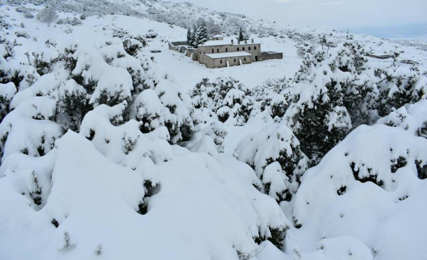 Αποκλεισμένο από τα χιόνια μοναστήρι της Αττικής