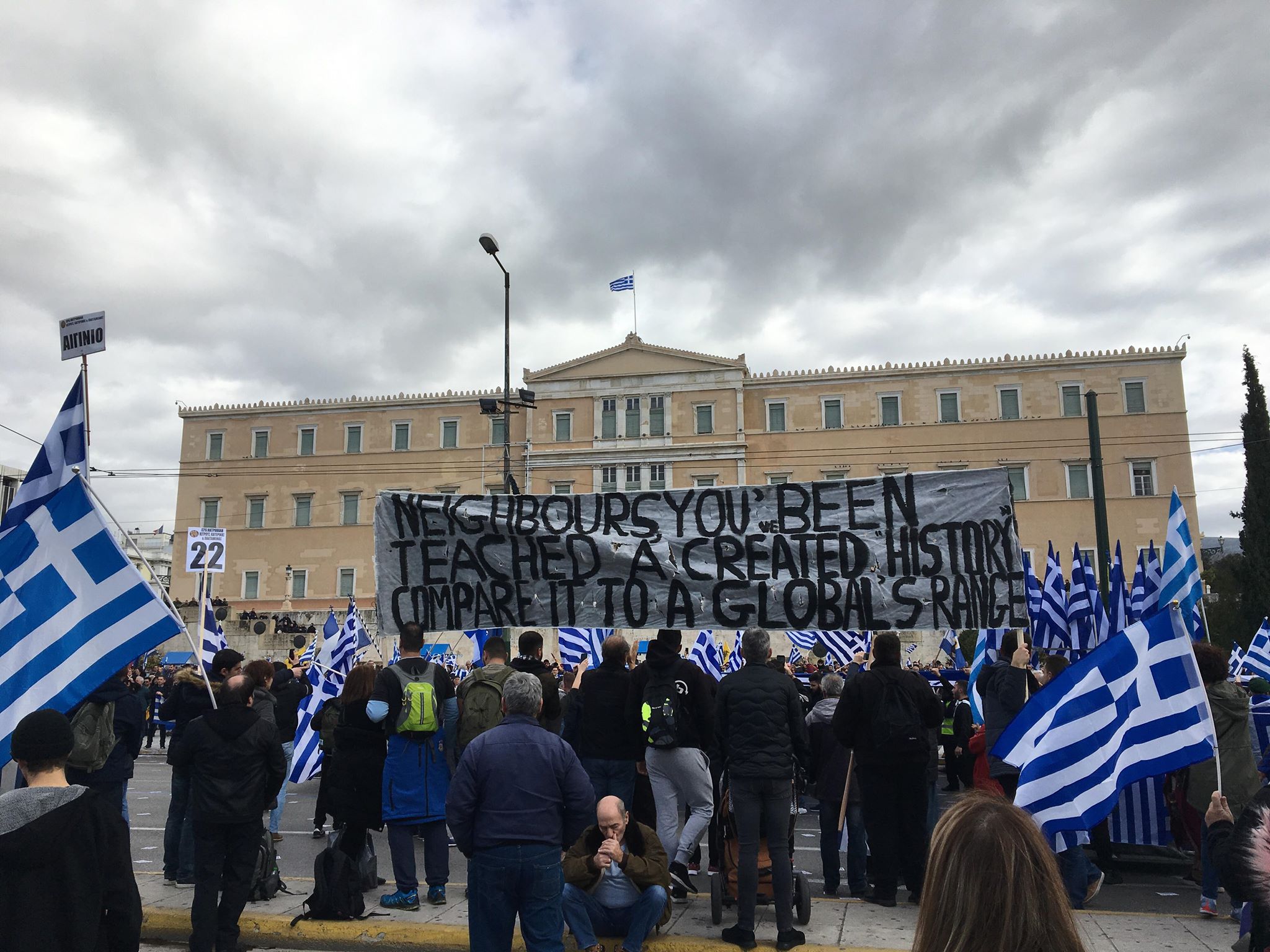 Στο συλλαλητήριο της Αθήνας για τη συμφωνία των Πρεσπών βέβαια θα μπορούσε να αναρωτηθεί κανείς αν θα έπρεπε να τηρήσει τον ίδιο τρόπο ομολογίας χωρίς να κρατήσει πλακάτ και σημαίες για να φωνάξει για τα συμφέροντα της Πατρίδας ή αν θα έπρεπε να βγει στους δρόμους ειρηνικά και να διαδηλώσει για τα εθνικά συμφέροντα.