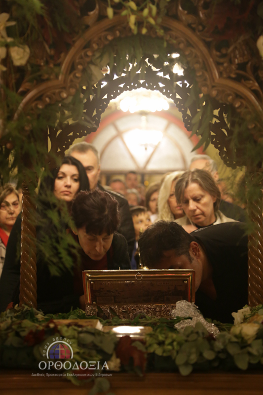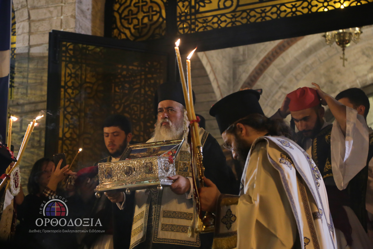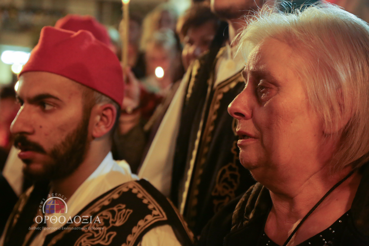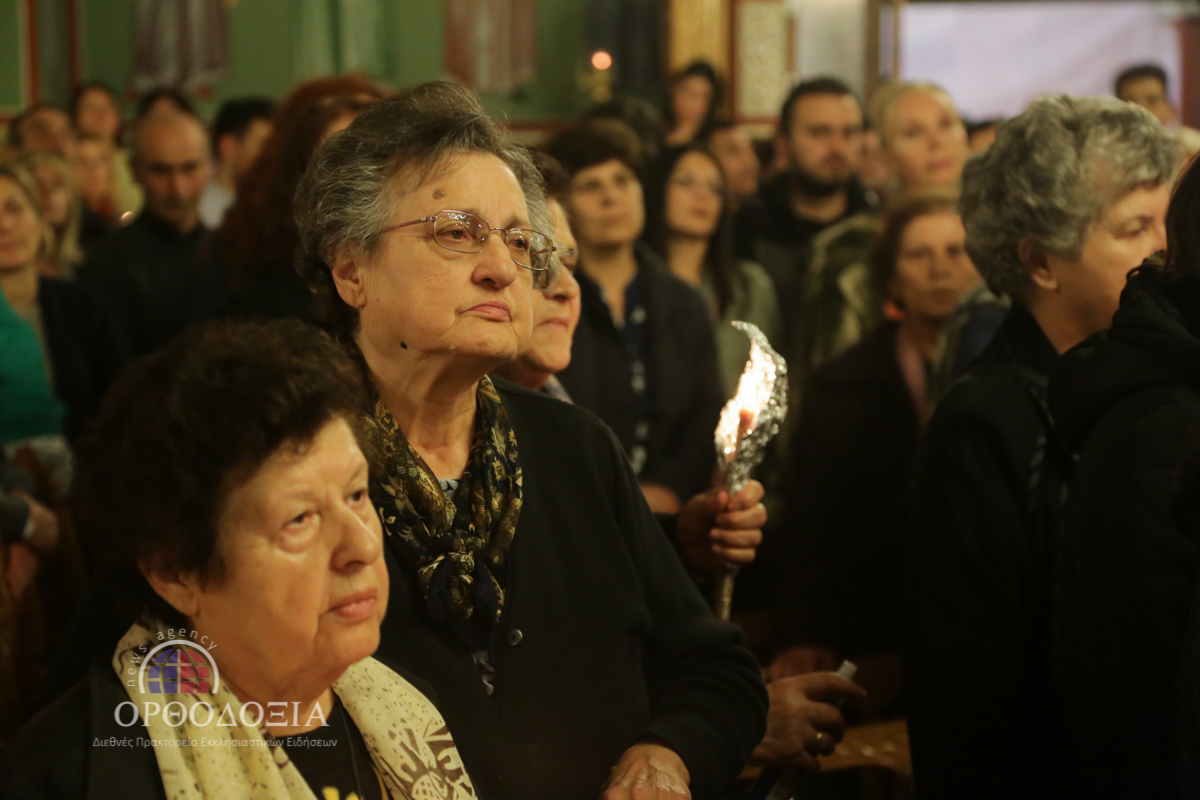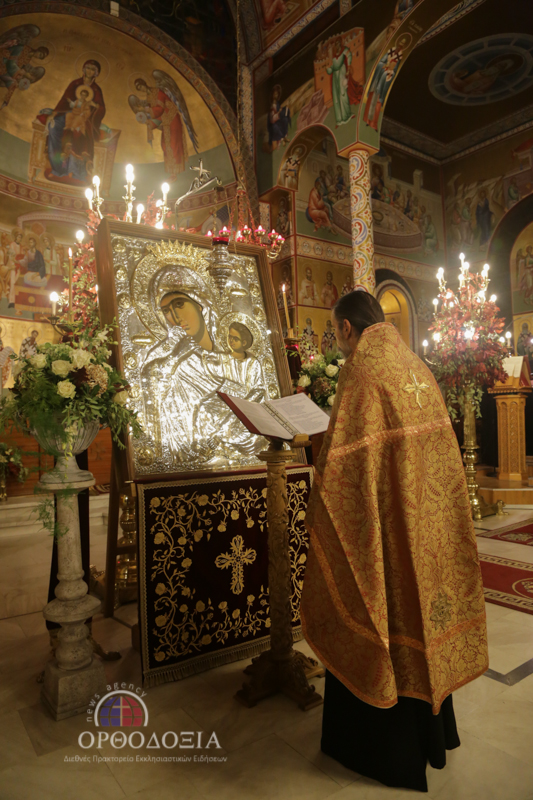 Οι εκατοντάδες πιστοί, που κατέκλυσαν τον Ιερό Ναό, ξεπροβόδισαν την Παναγία κρατώντας στα χέρια τους αναμμένες λαμπάδες και ραίνοντάς Την με λουλούδια.