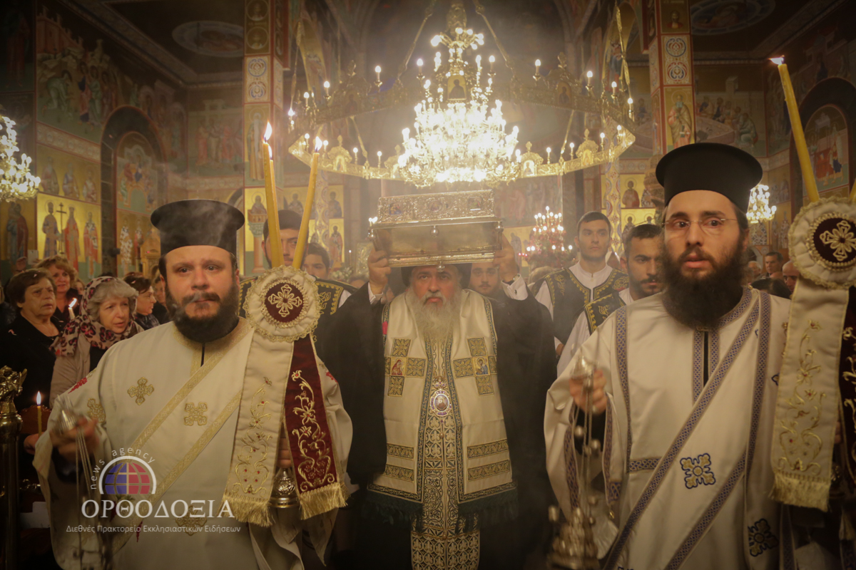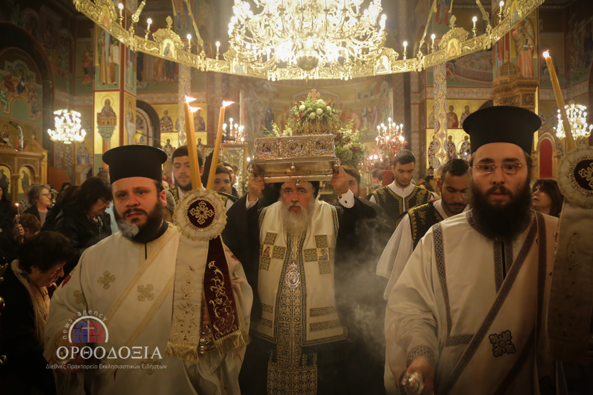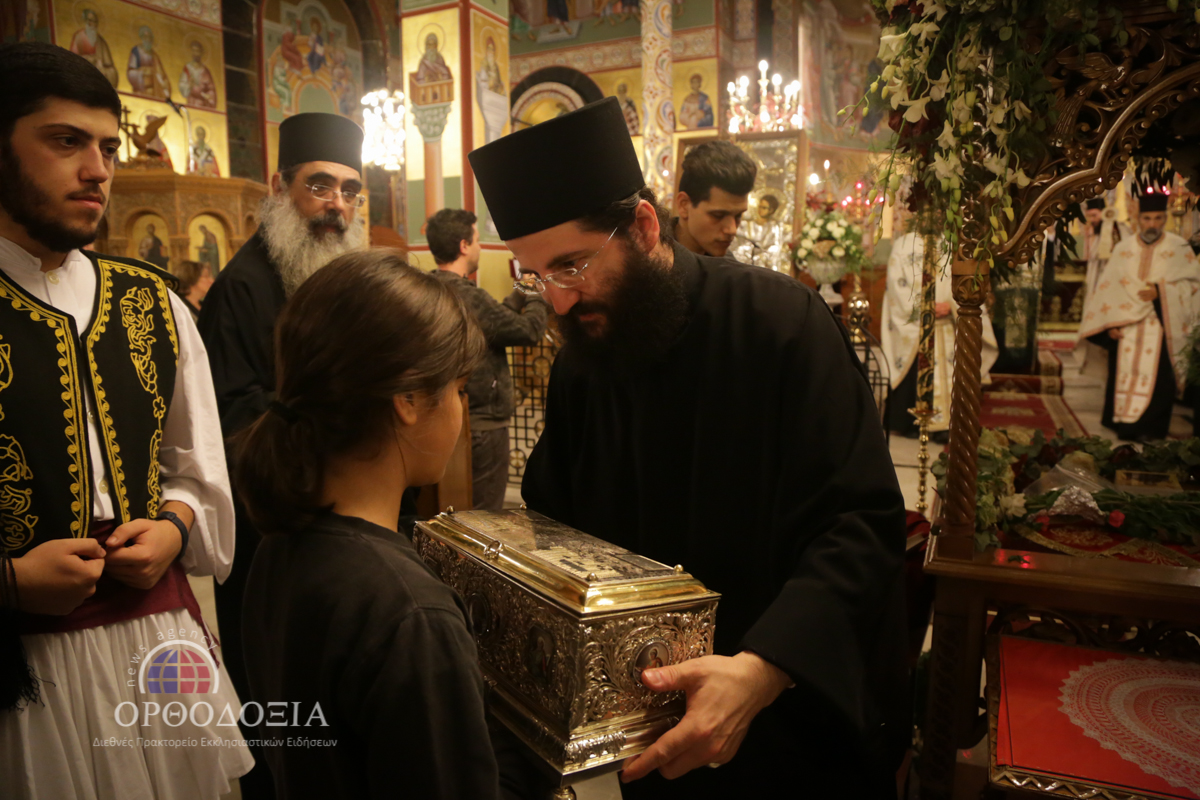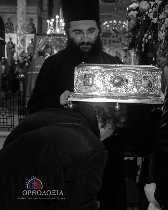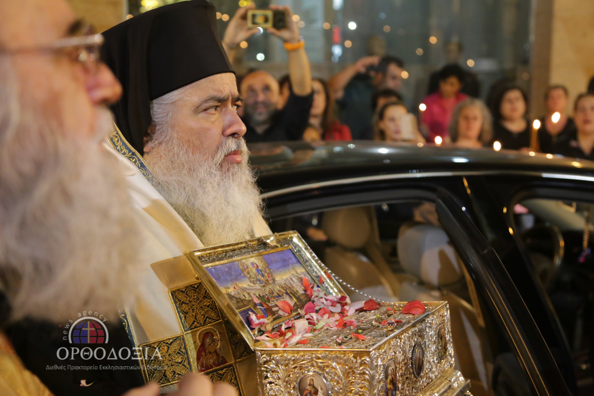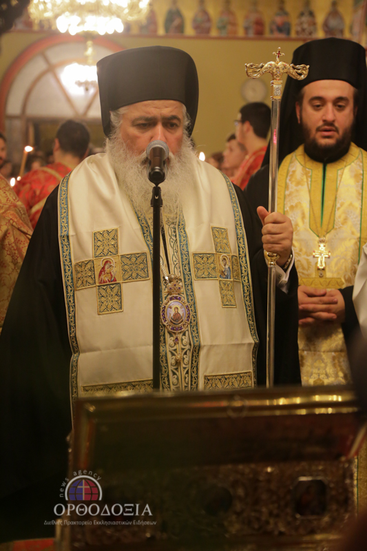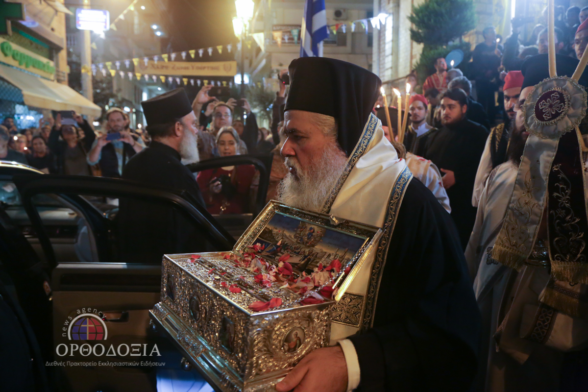 Ο Σεβασμιώτατος κ. Βαρνάβας κρατώντας ευλαβικά στα χέρια Του το μέγιστο της Ορθοδοξίας κειμήλιο ευλόγησε σταυροειδώς το συγκεντρωμένο πλήθος προσφέροντας σε όλους πλούσια τη θεομητορική ευλογία.