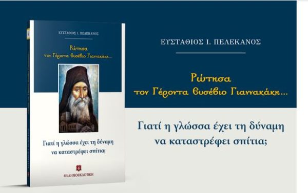 Κυκλοφόρησε το νέο βιβλίο από τις Εκδόσεις Ελληνοεκδοτική του Ευστάθιου Ι.Πελεκάνου με τίτλο:Ρώτησα τον Γέροντα Ευσέβιο Γιαννακάκη-Γιατί η γλώσσα έχει τη δύναμη να καταστρέφει σπίτια;