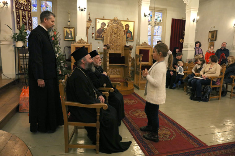 Στο τέλος της εκδήλωσης ο Μητροπολίτης Ταλλίνης και πάσης Εσθονίας κ. Στέφανος μίλησε απευθυνόμενος στους γονείς και στα παιδιά σχετικά με τη δύναμη του δεσμού της οικογένειας και στη συνέχεια μοίρασε, κατά το έθος, δώρα στα παιδιά.