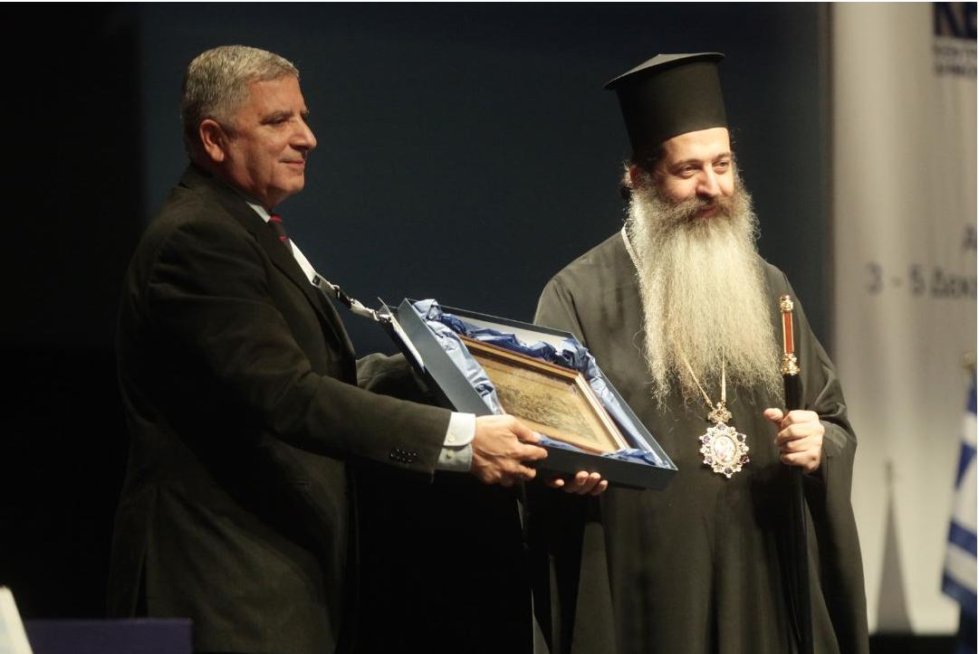 Στην έναρξη του Ετήσιου Τακτικού Συνεδρίου της ΚΕΔΕ βρέθηκε ο Θεοφιλέστατος Επίσκοπος Θεσπιών και Πρωτοσύγκελλος της Ιεράς Αρχιεπισκοπής Αθηνών κ. Συμεών. Εκεί του απονεμήθηκε τιμητική πλακέτα από τον Δήμαρχο Αμαρουσίου, Πρόεδρο ΚΕΔΕ και υποψήφιο για την περιφέρεια Αττικής Γιώργο Πατούλη.