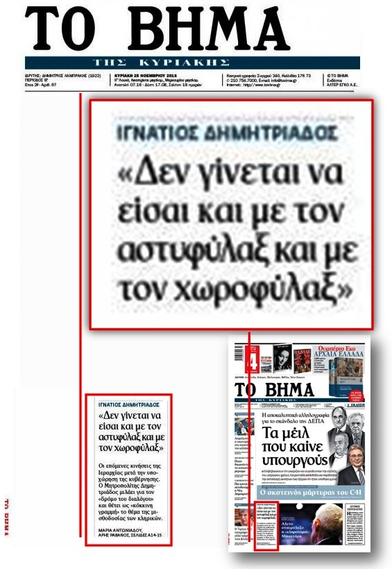 Συνέντευξη στην εφημερίδα “Το Βήμα της Κυριακής” παραχώρησε ο Μητροπολίτης Δημητριάδος και Αλμυρού κ. Ιγνάτιος, ο οποίος, μεταξύ άλλων, τόνισε, ότι πρέπει να αποφευχθεί η σύγκρουση Εκκλησίας και Πολιτείας. Ακολουθεί η συνέντευξη: