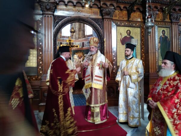 Μετά το πέρας της Θείας Λειτουργίας, ο Σεβασμιώτατος ευχαρίστησε τους πιστούς που έσπευσαν να του ευχηθούν ενώ ακολούθησε δεξίωση στην Κρύπτη του Καθεδρικού Ναού.