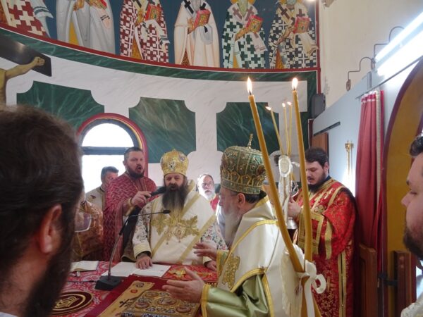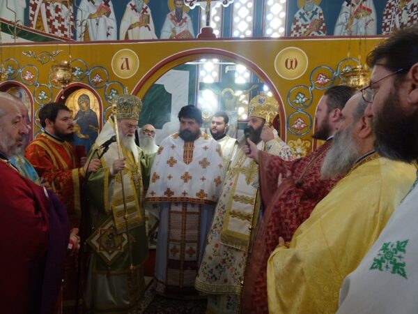Η ημέρα ξεκίνησε με την καθιερωμένη προς τιμήν των Αγίων Αποστόλων και συνεργών του Απ. Παύλου, Ακύλα και Πρισκίλλης, προστατών του θεσμού της συζυγίας, Δισαρχιερατική Θ. Λειτουργία, προεξάρχοντος του Σεβασμιωτάτου Μητροπολίτου μας κ. Διονυσίου και συνιερουργούντος του Θεοφιλεστάτου Πρωτοσυγκέλλου της Ι. Μητροπόλεως μας Επισκόπου Κεγχρεών κ. Αγαπίου, πλαισιωμένων από πλήθος Κληρικών και των Διακόνων της Ι. Μητροπόλεως.