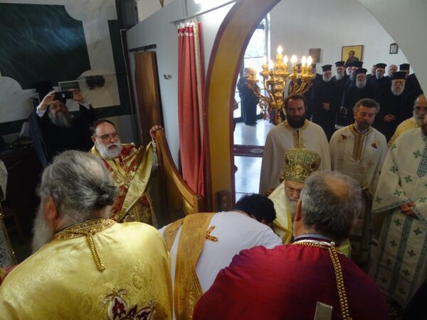 Κατά την διάρκεια της Θ. Λειτουργίας ο σεπτός Ποιμενάρχης κ. Διονύσιος,τέλεσε την εις Πρεσβύτερον Χειροτονία του Διακόνου π.Βασιλείου Ευσταθιάδη, αποφοίτου της Ανωτάτης Εκκλησιαστικής Ακαδημίας Αθηνών, εγγάμου και πατρός δύο τέκνων. Ο Σεβ. Ποιμενάρχης μας κ. Διονύσιος, ομίλησε για τους εορταζομένους Αγίους Αποστόλους και για τον θεσμό της οικογένειας, τονίζοντας ότι η Εκκλησία μας πάντοτε ήταν και θα είναι αρωγός, βοηθώντας είτε υλικά είτε πνευματικά αυτόν τον θεσμό, που είναι το «κύτταρο» της Κοινωνίας μας. Απευθυνόμενος δε προς τον νέο Πρεσβύτερο της Ι. Μητροπόλεως μας του επεσήμανε την σπουδαιότητα του υπουργήματοςως και τις ευθύνες, που αναλαμβάνει, και του συνέστησε να ιερουργεί με φόβο Θεού, ώστε μέσα από τον προσωπικό του αγώνα και την αγάπη του για τον Σωτήρα Χριστό και την Εκκλησία Του να προσελκύει τους πιστούς στην ορθή λατρεία του Θεού.