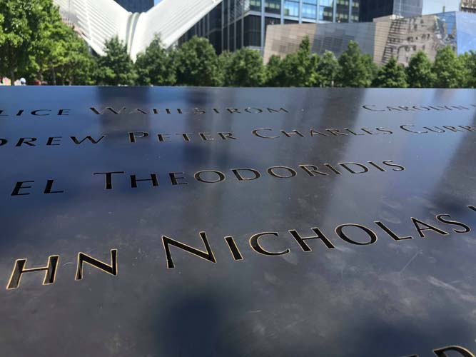 Στο σημείο των δίδυμων πύργων έχουν κατασκευάσει δεξαμενές με νερό που τρέχει ασταμάτητα συμβολίζοντας τα δάκρια του κόσμου που ακόμη θρηνεί για τα θύματα της επίθεσης.
