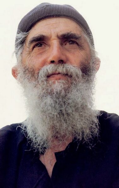 «Επάνω, λοιπόν, σε αυτήν την αγωνία μου, ενώ παρακαλούσα την Παναγία να με βοηθήσει, ξαφνικά μου παρουσιάζεται ένας Αναχωρητής με φωτεινό πρόσωπο – θα ήταν γύρω στα εβδομήντα χρόνια – που έδειχνε από την ενδυμασία του να μην είχε επαφή με ανθρώπους. Φορούσε ζωστικό σαν από καραβοπάνι, αλλά πολύ ξεθωριασμένο και κατατρυπημένο. Τις δε τρύπες τις είχες πιασμένες με ξύλινα σουβλιά, όπως πιάνουν οι γεωργοί τα τρύπια σακιά, όταν δεν έχουν σακοράφια και σπάγκο. Είχε επίσης έναν τουρβά δερμάτινο, ξεθωριασμένο και τις τρύπες πιασμένες πάλι με τον ίδιο τρόπο. Στον δε λαιμό του είχε μία χονδρή αλυσίδα, που κρατούσε ένα κουτί μπροστά στο στήθος του. Φαίνεται, είχε κάτι το ιερό! Πριν, λοιπόν, τον ρωτήσω εγώ, μου είπε εκείνος: Παιδί μου, δεν πάει για την Αγία Άννα αυτός ο δρόμος, και μου έδειξε το μονοπάτι. Από όλο το παρουσιαστικό του, φαινόταν Άγιος! Ρώτησα μετά τον ερημίτη: Που μένεις, Γέροντα; Κι εκείνος μου απήντησε: Κάπου εδώ, και μου έδειχνε την κορυφή του Άθωνα».