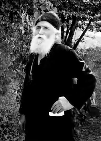 «Επάνω, λοιπόν, σε αυτήν την αγωνία μου, ενώ παρακαλούσα την Παναγία να με βοηθήσει, ξαφνικά μου παρουσιάζεται ένας Αναχωρητής με φωτεινό πρόσωπο – θα ήταν γύρω στα εβδομήντα χρόνια – που έδειχνε από την ενδυμασία του να μην είχε επαφή με ανθρώπους. Φορούσε ζωστικό σαν από καραβοπάνι, αλλά πολύ ξεθωριασμένο και κατατρυπημένο. Τις δε τρύπες τις είχες πιασμένες με ξύλινα σουβλιά, όπως πιάνουν οι γεωργοί τα τρύπια σακιά, όταν δεν έχουν σακοράφια και σπάγκο. Είχε επίσης έναν τουρβά δερμάτινο, ξεθωριασμένο και τις τρύπες πιασμένες πάλι με τον ίδιο τρόπο. Στον δε λαιμό του είχε μία χονδρή αλυσίδα, που κρατούσε ένα κουτί μπροστά στο στήθος του. Φαίνεται, είχε κάτι το ιερό! Πριν, λοιπόν, τον ρωτήσω εγώ, μου είπε εκείνος: Παιδί μου, δεν πάει για την Αγία Άννα αυτός ο δρόμος, και μου έδειξε το μονοπάτι. Από όλο το παρουσιαστικό του, φαινόταν Άγιος! Ρώτησα μετά τον ερημίτη: Που μένεις, Γέροντα; Κι εκείνος μου απήντησε: Κάπου εδώ, και μου έδειχνε την κορυφή του Άθωνα».