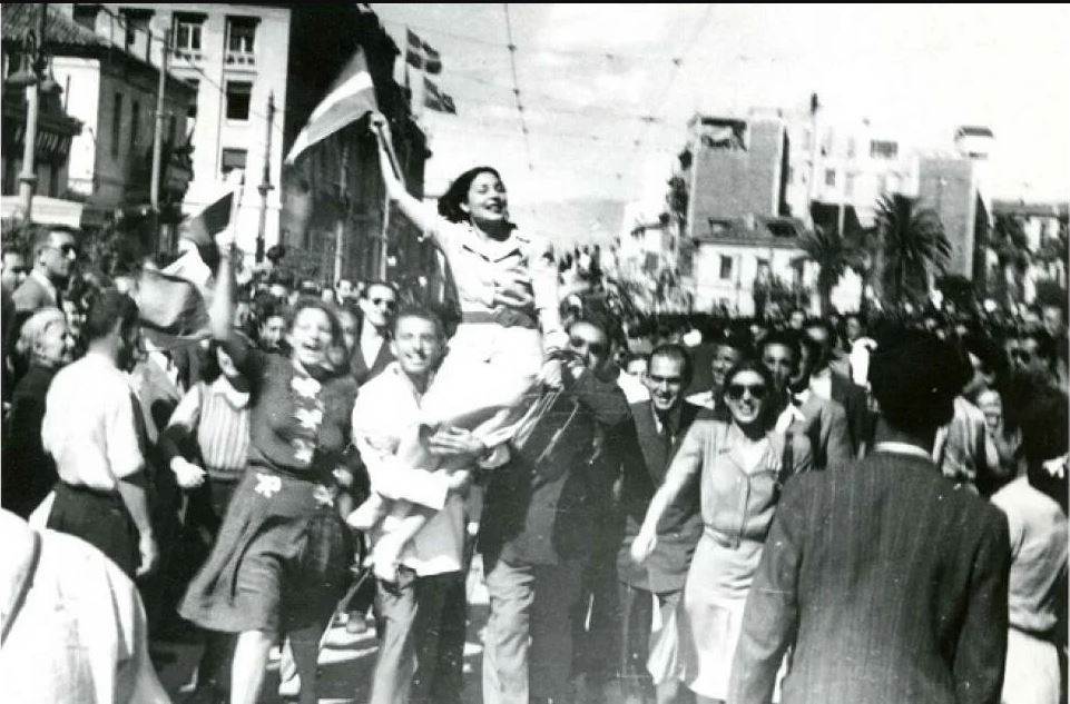 Η ελληνική σημαία κυματίζει ξανά στην Ακρόπολη. Στους αθηναϊκούς δρόμους οι πολίτες πανηγυρίζουν, πλήθη ξεχύνονται στους δρόμους. Οι αθηναϊκοί δρόμοι κατάμεστοι από πλήθη με σημαίες. Στην οδό Πανεπιστημίου και στην πλατεία Ομονοίας, γερμανικά στρατιωτικά οχήματα κινούνται με ταχύτητα, εγκαταλείποντας την Αθήνα, ενώ στα κτίρια γύρω τους ανεμίζουν ελληνικές και συμμαχικές σημαίες.