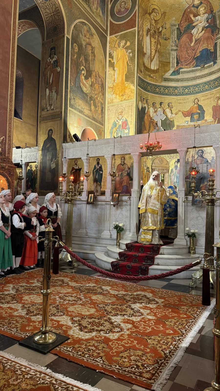 Της Θείας Λειτουργίας προέστη ο Θεοφιλέστατος Επίσκοπος Ρωγών κ. Φιλόθεος. Συμμετείχαν οι Βουλευτές Κυκλάδων κα Αικατερίνη Μονογυιού και κ. Φίλιππος Φόρτωμας, ο Πρόεδρος της Αδελφότητος Τηνίων κ. Εμμανουήλ Σκαρής και Μέλη του ΔΣ, ο εκπροσωπών τον Δήμαρχο Τήνου, Καθηγητές, Πρόεδροι Συλλόγων και Φορέων, παιδιά του Πολιτιστικού Συλλόγου της Αδελφότητας με τα λάβαρα και τις σημαίες της, παρεπιδημούντες και κατοικούντες στην Αθήνα Τήνιοι και πολλοί πιστοί Ενορίτες. Παρέστη επίσης, ο Τήνιος Μητροπολίτης Πτολεμαΐδος κ. Παντελεήμων, εκ του Πατριαρχείου Αλεξανδρείας.
