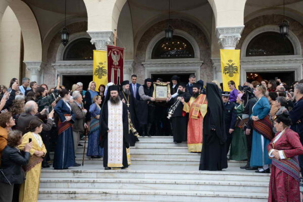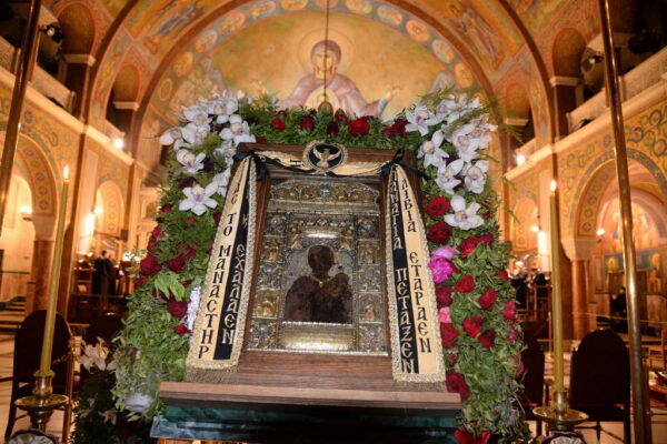 Χιλιάδες εὐσεβῶν χριστιανῶν συνωστίζοντο ἐντός καί ἐκτός τοῦ Ἱεροῦ Ναοῦ προκειμένου νά προσκυνήσουν τήν Εἰκόνα τῆς Παναγίας Σουμελᾶ καί τά ἱερά Ἀποστολικά καί Μαρτυρικά Λείψανα.