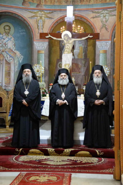 Τῆς Θείας Λειτουργίας προέστη ὁ Σεβασμιώτατος Μητροπολίτης Βεροίας, Ναούσης καί Καμπανίας κ. Παντελεήμων, συλλειτουργούντων, τοῦ Σεβασμιωτάτου Μητροπολίτου Μάνης κ. Χρυσοστόμου, τοῦ Θεοφιλεστάτου Ἐπισκόπου Κερνίτσης κ. Χρυσάνθου καί τοῦ οἰκείου Ἱεράρχου, Σεβασμιωτάτου Μητροπολίτου Πατρῶν κ.κ. Χρυσοστόμου.