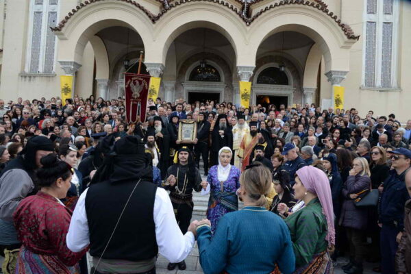 Πρό τῆς ἀναχωρήσεως τῆς Ἱερᾶς Εἰκόνος, στό προαύλιο τοῦ Ἱεροῦ Ναοῦ τοῦ Ἁγίου Ἀποστόλου Ἀνδρέου, μέλη τοῦ Φάρου Ποντίων Πατρῶν, μέ ποντιακές ἐνδυμασίες, χόρεψαν παραδοσιακούς Ποντιακούς χορούς, κατασυγκινήσαντες τά πλήθη τῶν εὐσεβῶν χριστιανῶν.