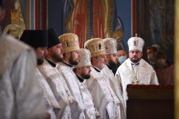 Μαζί με τον Μητροπολίτη Επιφάνιο συλλειτούργησαν ο Μητροπολίτης Περιασλάφ Αλέξανδρος, ο Αρχιεπίσκοπος Τσέρνιχιφ Ευστράτιος, ο Αρχιεπίσκοπος Βίσχοροντ Αγαπητός, Ο Επίσκοπος Βασιλκίβ Λαυρέντιος, ιερομόναχοι της Αδελφότητος της Ιεράς Μονής του Αγίου Μιχαήλ και προσκεκλημένοι ιερείς.