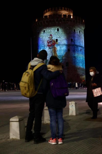 25/03/2021 25/03/2021 Στα χρώματα της Ελλάδας και με τα μηνύματα της Ελληνικής Επανάστασης του 1821 φωταγωγήθηκε την εσπέρα της 25ης Μαρτίου, ο Λευκός Πύργος, παρουσία του δημάρχου Θεσσαλονίκης Κωνσταντίνου Ζέρβα και πλήθους κόσμου. ΡΕΠΟΡΤΑΖ – ΦΩΤΟ: ΡΑΦΑΗΛ ΓΕΩΡΓΙΑΔΗΣ – ΠΡΑΚΤΟΡΕΙΟ “ΟΡΘΟΔΟΞΙΑ”