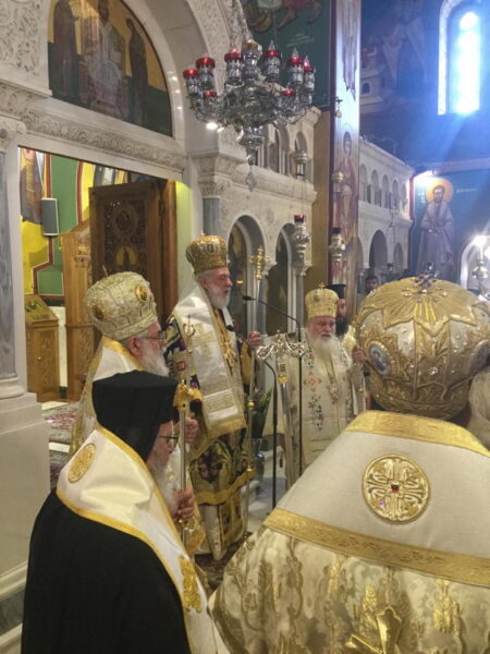 Της Πολυαρχιερατικής Θείας Λειτουργίας προεξήρχε ο Σεβ. Μητροπολίτης Σύρου κ Δωρόθεος, ο οποίος χοροστάτησε στον Όρθρο, συνιερουργούντων του Σεβ. Μητροπολίτου Ιλίου κ. Αθηναγόρα, του Θεοφιλεστάτου Επισκόπου Ρωγών κ. Φιλοθέου και του οικείου Ποιμενάρχου Σεβ. Μητροπολίτου κ. Γαβριήλ με τη συμμετοχή πολλών κληρικών, ενώ συμπροσευχόμενος εντός του Ιερού Βήματος παρέστη ο Σεβ. Μητροπολίτης Φαναρίου κ. Αγαθάγγελος.