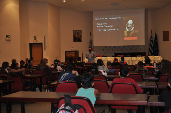 Την Ορθόδοξο Ακαδημία Κρήτης (ΟΑΚ) επισκέφθηκαν την Πέμπτη, 21 Οκτωβρίου 2021, 38 μαθητές από την ΣΤ΄ Τάξη του 1ου Δημοτικού Σχολείου Νέας Κυδωνίας, συνοδευόμενοι από τοις Δασκάλες τους, για να παρακολουθήσουν την Εκπαιδευτική Δράση, με τίτλο: «Δομήνικος Θεοτοκόπουλος: ο ζωγράφος του Θεού», στο πλαίσιο των Εκπαιδευτικών Προγραμμάτων που πραγματοποιεί η ΟΑΚ.