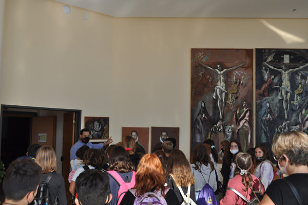 Ακολούθησε περιήγηση στην Αίθουσα όπου φυλάσσονται τα αντίγραφα του Δομήνικου Θεοτοκόπουλου από την ταινία του σκηνοθέτη Ιωάννη Σμαραγδή, «El Greco». Πρόκειται για 11 αναδημιουργημένα έργα του Δομήνικου Θεοτοκόπουλου, τα οποία δημιουργήθηκαν για τις ανάγκες της κινηματογραφικής ταινίας, από τους διακεκριμένους πλέον έλληνες ζωγράφους Σάββα Γεωργιάδη, Νίκο Μόσχο και Στέλιο Πετρουλάκη. Παράλληλα οι μαθητές είχαν την ευκαιρία να θαυμάσουν την Εικαστική Έκθεση της Πέπης Χατζηδάκη με θέμα: «Οι δικοί μου πρόσφυγες».