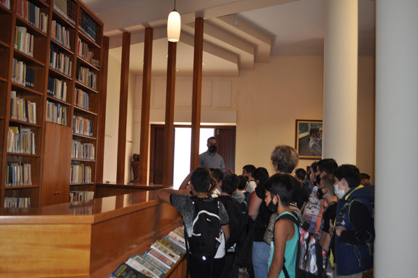 Τέλος, οι μαθητές ξεναγήθηκαν στην Βιβλιοθήκη του Ιδρύματος, «Το Φως», όπου ενημερώθηκαν για τους τρόπους αναζήτησης των βιβλίων, καθώς και για την ψηφιοποίηση των βιβλίων και των περιοδικών της Συλλογής του Ιδρύματος.