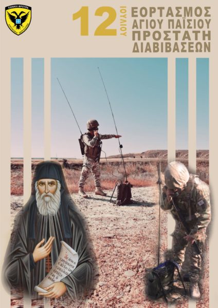 Τον Προστάτη του Όσιο Παϊσιο τον Αγιορείτη τιμά σήμερα το Όπλο των Διαβιβάσεων καθώς ο Άγιος είχε υπηρετήσει τη στρατιωτική του θητεία στους δύσκολους καιρούς του Εμφυλίου Πολέμου στις Διαβιβάσεις ευρισκόμενος στην πρώτη γραμμή του μετώπου.
