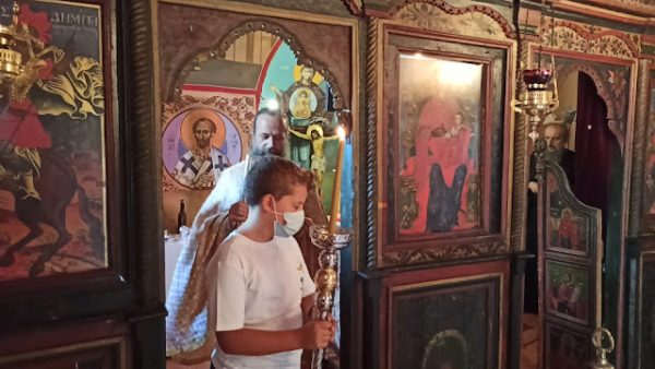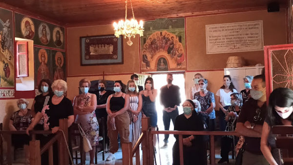 Πολύς κόσμος παρευρέθηκε στη Θεία Λειτουργία στον κεντρικό ναό του Αγίου Δημητρίου. Ιερούργησαν οι ιερείς π. Σάββας Γεωργιάδης (επικεφαλής της ομάδας πρωτοβουλίας Βαλμαδιωτών της Αθήνας) και ο εφημέριος π. Ευστάθιος Καραδήμας. Ο π. Σάββας στο κήρυγμά του αναφέρθηκε στην Κοίμηση της Θεοτόκου. Εξέφρασε, τέλος, την ευχή με τις πρεσβείες του Αγ. Δημητρίου το επόμενο αντάμωμα να γίνει χωρίς τους περιορισμούς της πανδημίας.