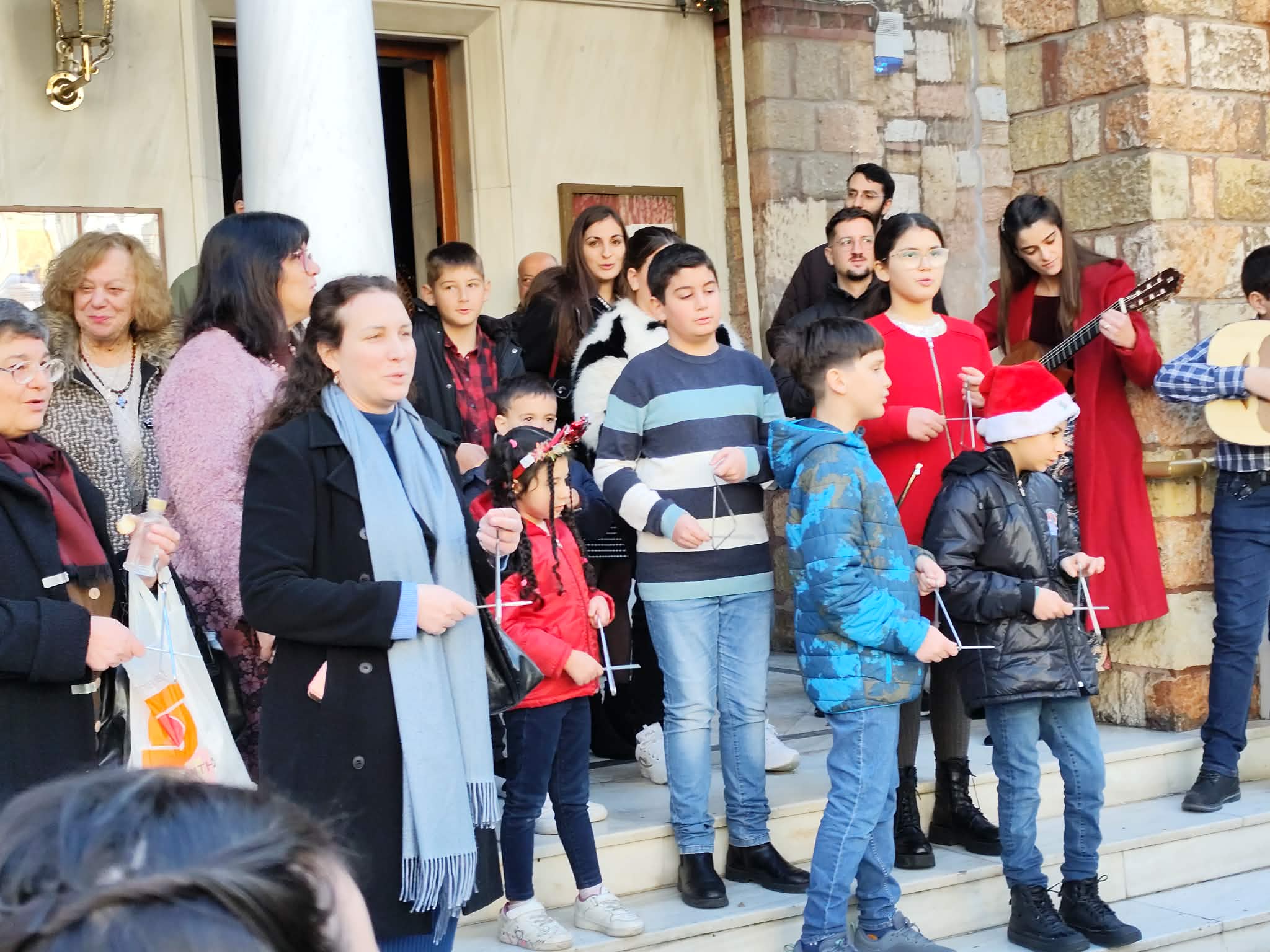 Παράλληλαμε το τέλος της λειτουργίας το Τμήμα Νεότητας του Αγίου Δημητρίου, που εποπτεύει ο Πατέρας κος Δημήτριος Κωνσταντέλλος, έψαλε τα κάλαντα και έπαιξε συνάμα ωραία χριστουγεννιάτικα τραγούδια, που μας πρόσφεραν ξεχωριστή ηθική χαρά και αγαλλίαση. Σημειώνουμε επίσης τις εξαίρετες ψαλ-μωδίες των εγκρίτων ιεροψαλτών του ναού, στο δεξί αναλόγιο του κουΙωάννη Πλευρίτη και στο αριστερό αναλόγιο των κ.κ. Δημήτρη Κοταρίδη και Μάνου Δεστούνη.