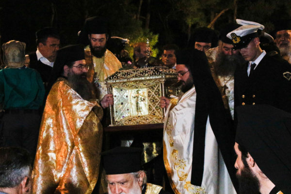 Ακολούθησε η αναχώρηση του ιερού σκηνώματος, για να επιστραφεί στον Μητροπολιτικό Ναό Αθηνών, όπου φυλάσσεται.