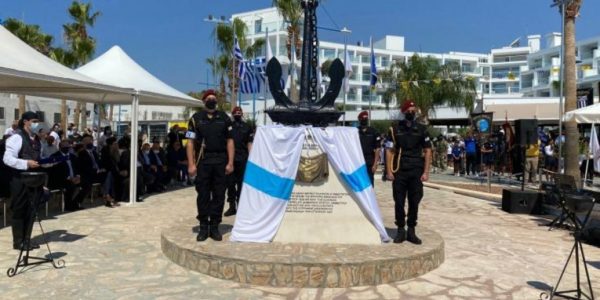Ο Πρόεδρος της Κυπριακής Δημοκρατίας, Νίκος Αναστασιάδης, ο τέως Πρόεδρος της Ελληνικής Δημοκρατίας, Προκόπης Παυλόπουλος, και ο Δήμαρχος Αγίας Νάπας, Χρήστος Ζαννέττου, τέλεσαν τα αποκαλυπτήρια του μνημείου. Την ίδια ώρα, σκάφη του πολεμικού ναυτικού της Εθνικής Φρουράς, το πλοίο ανοικτής θαλάσσης Αρχιπλοίαρχου Ανδρέα Ιωαννίδη και το “Πλωτάρχης Ελευθέριος Τσομάκης” του πολεμικού ναυτικού, πραγματοποιούσαν τιμητικούς κανονιοβολισμούς.