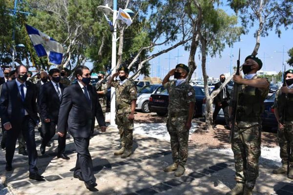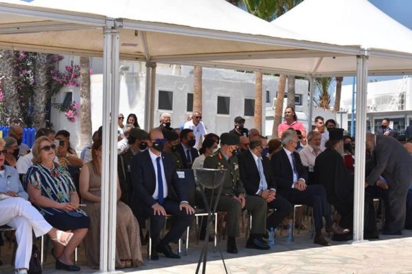 Ο Πρόεδρος της Κυπριακής Δημοκρατίας, Νίκος Αναστασιάδης, ο τέως Πρόεδρος της Ελληνικής Δημοκρατίας, Προκόπης Παυλόπουλος, και ο Δήμαρχος Αγίας Νάπας, Χρήστος Ζαννέττου, τέλεσαν τα αποκαλυπτήρια του μνημείου. Την ίδια ώρα, σκάφη του πολεμικού ναυτικού της Εθνικής Φρουράς, το πλοίο ανοικτής θαλάσσης Αρχιπλοίαρχου Ανδρέα Ιωαννίδη και το “Πλωτάρχης Ελευθέριος Τσομάκης” του πολεμικού ναυτικού, πραγματοποιούσαν τιμητικούς κανονιοβολισμούς.