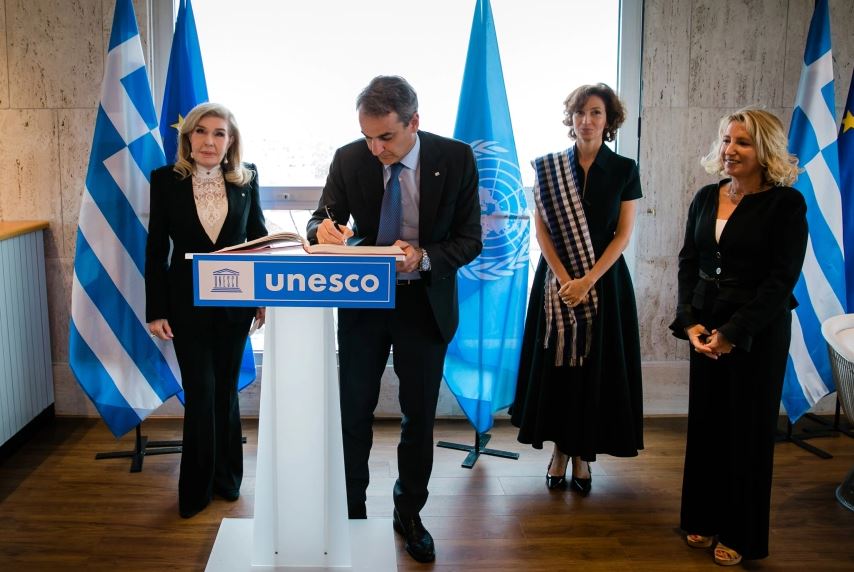 Με την Γενική Διευθύντρια της UNESCO, Audrey Azoulay, στην έδρα του οργανισμού στο Παρίσι συναντήθηκε χθες ο Πρωθυπουργός Κυριάκος Μητσοτάκης λίγο πριν εγκαινιάσει από κοινού με τον Γάλλο Πρόεδρο, Εμμανουέλ Μακρόν, την έκθεση την έκθεση τέχνης Paris – Athènes, Naissance de la Grèce moderne 1675 ‐ 1919 (Παρίσι – Αθήνα, η γέννηση της σύγχρονης Ελλάδας 1675 ‐ 1919), στο Μουσείο του Λούβρου.