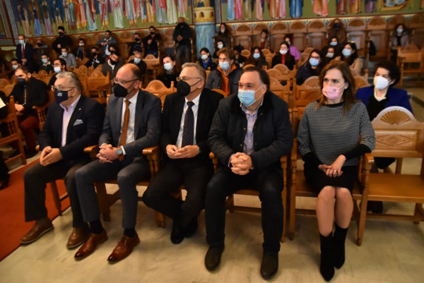 Παρέστησαν ο Πρύτανης του ΑΠΘ κ. Νίκος Παπαϊωάννου, ο Κοσμήτορας της Θεολογικής Σχολής κ. Χρυσόστομος Σταμούλης, ο Πρόεδρος του Τμήματος Θεολογίας κ. Νίκος Μαγγιώρος, ο Πρόεδρος του Τμήματος Κοινωνικής Θεολογίας και Χριστιανικού Πολιτισμού κ. Κωνσταντίνος Χρήστου, μέλη ΔΕΠ των δυο Τμημάτων, λοιπό διδακτικό, τεχνικό και διοικητικό προσωπικό καθώς και οι φοιτητές. Ο Σεβασμιώτατος συνοδεύτηκε από τον εκπρόσωπο του Παναγιωτάτου Μητροπολίτη Θεσσαλονίκης, Πανοσιολογιώτατο Αρχιμανδρίτη π. Βαρνάβα, Καθηγούμενο της Ιεράς Μονής Αγίας Θεοδώρας Θεσσαλονίκης.