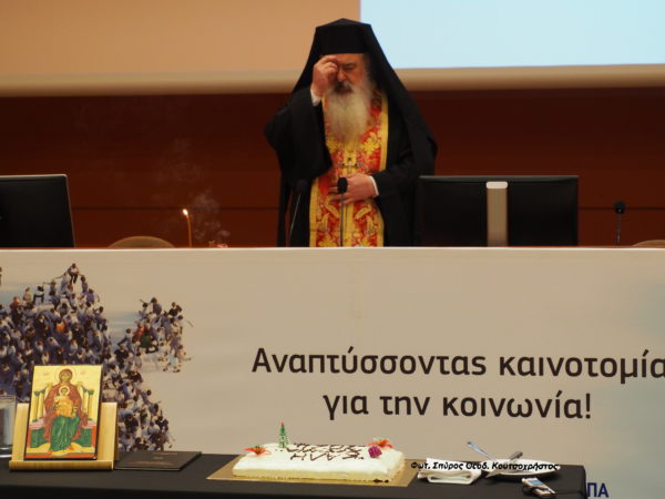 Ο π. Μαρίνος εξέφρασε την χαρά του που βρίσκεται σε «οικείο χώρο» και επεσήμανε στον σύντομο χαιρετισμό του,