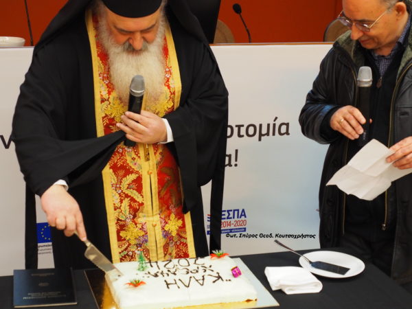 Ο Πανοσιολογιώτατος Αρχιμανδρίτης π. Μαρίνος Πιτσικάλης, καθηγητής της Σχολής Θετικών Επιστημών – Τμήμα Χημείας, του Εθνικού και Καποδιστριακού Πανεπιστημίου Αθηνών, τέλεσε Αγιασμό και ευλόγησε την Αγιοβασιλόπιτα, την Παρασκευή 1η Μαρτίου 2024, στο Ινστιτούτο Νανοεπιστήμης και Νανοτεχνολογίας του Ε.Κ.Ε.Φ.Ε. «Δημόκριτος».