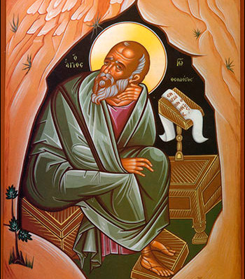 Κήρυξε το Ευαγγέλιο στη Μικρά Ασία. Εξορίστηκε από τον Ρωμαίο αυτοκράτορα Δομιτιανό από την Έφεσο στην Πάτμο. Ο ίδιος θεώρησε την εξορία του ως «πνευματική αποστολή», συνεχίζοντας να μεταλαμπαδεύει το Λόγο και την Ουσία του Θεού. Έτσι, το 95 μ.Χ. διέμεινε σε ένα σπήλαιο του λόφου μεταξύ της Σκάλας και της Χώρας, όπου πήγαινε για να προσεύχεται. Κατά τη διάρκεια της διαμονής του, μια Κυριακή έγινε η Αποκάλυψη. Εκεί που προσευχόταν, άκουσε τη φωνή του Θεού, να του λέει: «Eγώ είμαι το Α και το Ω, η αρχή και το τέλος. Ό,τι ακούσεις γράψτο σε βιβλίο» και εκείνη την ώρα σκίστηκε ο βράχος, που έκανε τρεις σχισμές, οι οποίες συμβολίζουν την Αγία Τριάδα. Ο Θεός υπαγόρευσε στον Ιωάννη το Ιερό Βιβλίο της Αποκάλυψης, ο οποίος με τη σειρά του το υπαγόρευσε στον μαθητή του, διάκονο Πρόχορο.