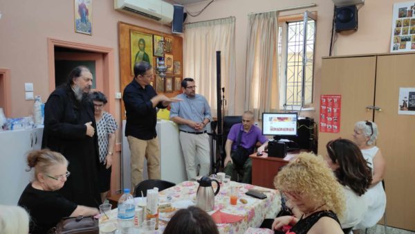 Στην πολύ όμορφη αυτή συντροφιά παρέστησαν ο π. Ανάργυρος Σιγάλας, ο οποίος είχε την αρχική ιδέα της δημιουργίας ενορίας κωφών στον Ιερό Ναό των Αγίων Πάντων, ο διερμηνέας της νοηματικής Στράτος Πατρινός, ο Παναγιώτης Πολύδωρος, που συντονίζει τους υπότιτλους κατά τη μετάδοση της Θείας Λειτουργίας στο κανάλι metalipsis, που ξεκίνησε τη λειτουργία του με υπότιτλους, ώστε την περίοδο του εγκλεισμού οι κωφοί να παρακολουθούν τις ακολουθίες και ο Κωνσταντίνος Μπουρούσης, που έφτιαξε όλο το σύστημα με τις κάμερες και δίδαξε τον τρόπο υλοποίησης της μετάδοσης με υπότιτλους.